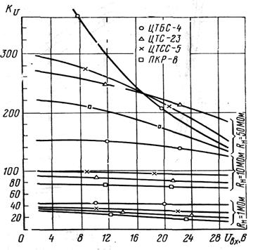 На следующем рисунке представлены зависимости Ku=f (Ubx) в различных режимах работы.