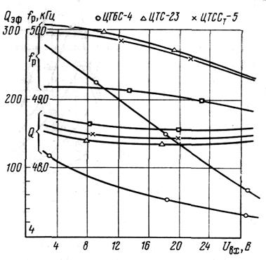 | Рисунок 32 – Зависимости Qэф=f(Uвх) и fр=f(Uвх) |