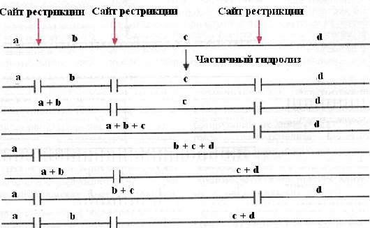 Рис. 48. Схема проведения частичного гидролиза фрагмента ДНК эндонуклеазой рестрикции типа II