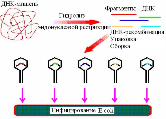Один из способов создания библиотеки ДНК состоит в обработке донорной ДНК эндонуклеазой рестрикции, узнающей тетрануклеотиды, например, Sau3AI, которая вносит один разрыв примерно на 256 пар оснований. Гидролиз проводят в таких условиях, чтобы происходило лишь частичное расщепление, так что образуются фрагменты различных размеров.
