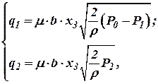 Количество масла протекающего через левое и правое дросселирующее отверстие золотника определяется так: