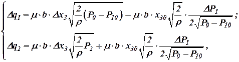 - расходы масла, протекающего через левое и правое плечо отверстия золотника при его перемещении штока на величину