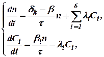 Уравнение кинетики реактора (без учета температуры) могут быть представлены в виде двух зависимостей: