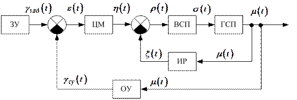 ЗУ - задающее устройство; ЦМ - центробежный маятник; ВСП- вспомогательный сервопривод; ГСП - главный сервопривод; ИР - изодромный регулятор;
