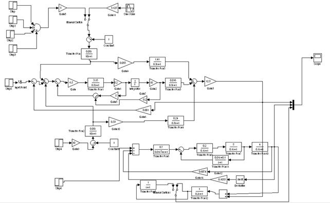 Для формирования диаграммы скачкообразно изменяющегося ветрового возмущения воспользуемся группой блоков Stер1 - Stер5, таким образом, задавая различные значения скорости ветра в различные моменты времени. Блок Sin Wave подойдет для формирования синусоидально изменяющегося ветрового возмущения. Для имитации нагрузки воспользуемся блоком. Stер 6.