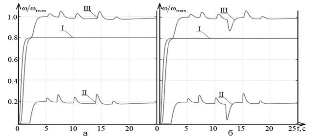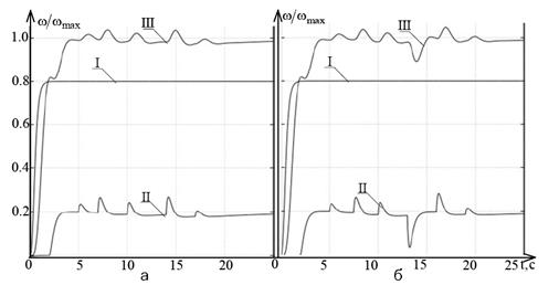 Рисунок 7 Результаты моделирования СУ ВГЭУ с магнитопорошковой муфтой для скачкообразного изменения ветра во временной области,