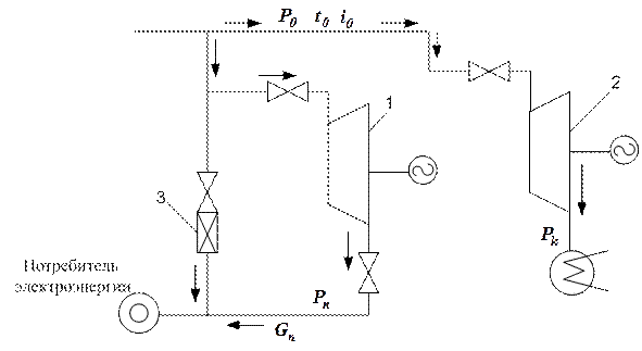 Рисунок 9.1 Принципиальная схема установки с турбиной с противодавлением и конденсационной турбиной: