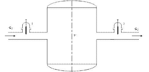 Представим себе резервуар неизменной вместимости V, заполненный газом, который принимает в резервуар в единицу времени в количестве