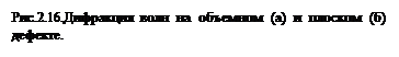 При дифракции на плоских дефектах (рис. 2.16,б) дифрагированные волны имеют вид расходящихся лучей от каждой точки края или ребра дефекта Д и Д'. Например, такие волны наблюдаются от края трещины.