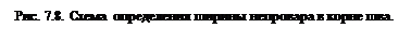 Соединения, в которых допускается непровар определенной ширины b(b < 3 мм) в корне шва, контролируют со стороны полки (рис. 7.8). При этом для определения ширины непровара b сравнивают амплитуды эхо-сигналов от непровара и его моделей, выполненных в образце, или экспериментально снятую зависимость амплитуд эхо-сигналов от ширины непровара.
