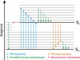 При комнатной температуре заселен уровень S0,n0. В фотолюминесценции переход частиц в возбужденное состояние происходит при облучении химических соединений анализируемого вещества ультрафиолетовым светом большой интенсивности от внешнего источника УФ-света.