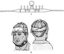 Техника применения. Опорная матерчатая шапочка одевается на голову и укрепляется с помощью тесемок, концы которых связывают в области лба.