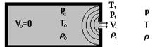 Истечение газа через отверстие. Рассматривается одномерное истечение газа из сосуда через отверстие в среду с противодавлением. В процессе истечения величина давления непрерывно изменяется, постепенно переходя от докритического режима к критическому и наоборот. Если за пределами отверстия отсутствуют ограничивающие струю поверхности, то струя называется СВОБОДНОЙ, иначе - ОГРАНИЧЕННОЙ или ПОЛУОГРАНИЧЕННОЙ.