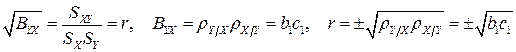 Укажем соотношения между коэффициентами корреляции, регрессии и детерминации при однофакторной линейной регрессии: