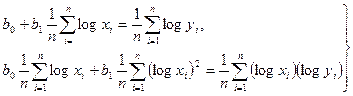 Для получения оценок параметров функций из табл. 1.3 их предварительно подвергают преобразованиям, главное назначение которых – линеаризация рассматриваемых зависимостей по оцениваемым параметрам. Параметры регрессии исходных функций находят путем обратных преобразований. Например, путем логарифмического преобразования можно перейти от зависимости показательного типа