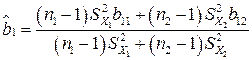 - оценка углового коэффициента для двух уравнений регрессии, полученная по формуле