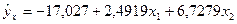 . Он показывает, что вариация производительности труда на 95,6 % обусловливается двумя выделенными факторами и лишь 4,4 % общей дисперсии не может быть объяснено этой зависимостью. Значит, выбранные факторы существенно влияют на показатель производительности труда, а уравнение регрессии статистически значимо, его подбор выполнен хорошо. Таким образом, изученная с помощью многофакторного корреляционного анализа статистическая связь между исследуемыми показателями свидетельствует о целесообразности построения двухфакторной регрессионной модели.