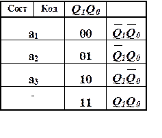 Кодированная таблица выходов является табличным описанием системы булевых функций, реализуемых схемой КСвых . Кодированная таблица переходов только после переработки с использованием матрицы переходов для заданного типа триггеров будет называться кодированной таблицей возбуждений и соответствовать описанию комбинационной схемы КСвх.