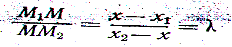 Түзудің бойындағы кесіндіні берілген қатынаста бөлу. Түзудің бойынан М1 (х1), М2(х2) нүктелері және
