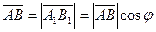 осімен жасайтын бұрышының косинусына көбейткенге тең.