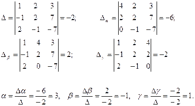 Бұл теңдеулер системасын Крамер формуласын пайдаланып шешейік: