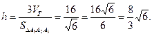 4-мысал. Төбелері А1(1, -1, 2), А2(2, 1, 2), А3(1, 1, 4) және А4(6, -3, 6) нүктелері болатын тетраэдрдің көлемін және А4 нүктесінен А1А2А3 жағына түсіретін биіктігін табу керек.