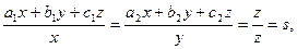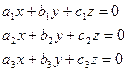 Үш түзудің теңдеулерін біртектес координаталар арқылы алайық: