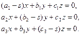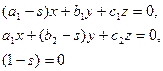Бұл теңдеулер системасы шешілу үшін мына үшінші ретті анықтауыш нольге тең болу керек: