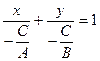 Түзудің кесіндідегі теңдеуін келесі геометриялық мағынасы бар,яғни Х осінен а-ға тең шамалы У осінен в-ға тең шаманы алып,оларды қоссақ, онда ізденілген түзудің кескіні шығады.