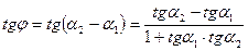 /6/ канондық теңдеуі арқылы берілген түзулер арсындағы бұрышты анықтау формуласы.