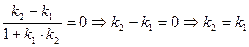 екі түзудің бұрыштық коэффициенті арқылы берілсін.