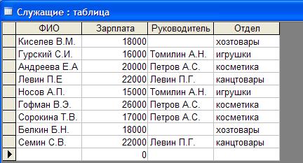 Рис. 3.19. Таблица СЛУЖАЩИЕ