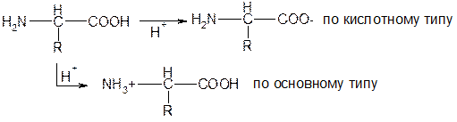 Если же рассматривать такую кислоту в водной среде, то диссоциация происходит и по кислотному и по основному типу – биполярный ион.