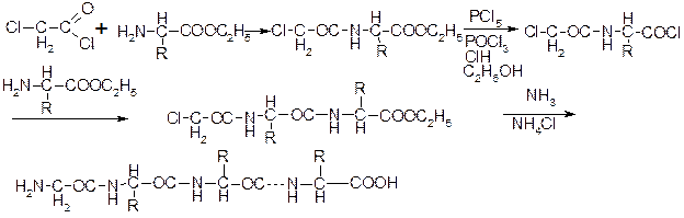 В настоящее время синтезировано более 2 тысяч разных белков. Главное в синтезе белка – это защита аминогруппы и активация карбоксильной группы для того, чтобы синтез был направленным. Защита аминогрупп осуществляется ацилированием, для этого обрабатывают ангидридами трихлоруксусной кислоты и вводят трифторацильную группы, либо обрабатывают по Зенерсу (бензиловым эфиром хлоругольной кислоты).