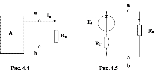 Любой активный двухполюсник можно заменить эквивалентным ему генератором (рис. 4.5). ЭДС генератора равна напряжению между зажимами