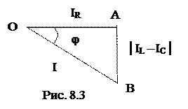 На основе векторной диаграммы можно изобразить треугольник токов ОАВ (рис. 8.3.)