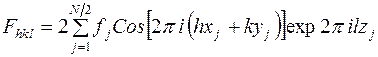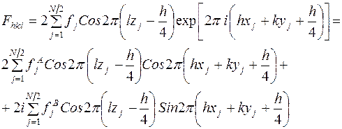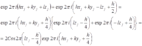 При наличии в структуре центра инверсии начало координат удобно совмещать с центром инверсии. В этом случае в формуле (2) останется только вещественная часть – косинусные члены суммы: