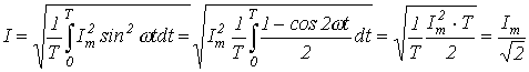 В соответствии с выражением (3) для действующего значения синусоидального тока запишем: