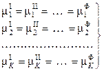 Условием равновесия гетерогенной системы из Ф фаз и К компонентов является постоянство температуры и давления, а также равенство всех химических потенциалов каждого из компонентов во всех фазах. Следовательно,