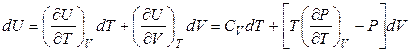 Интегрируя уравнение (4.27) и принимая во внимание уравнение (4.28), можно получить выражение для расчета внутренней энергии вещества при заданных температуре и объеме: