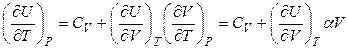 Далее, получим выражение, определяющее зависимость внутренней энергии от температуры при условии, что давление (а не объем) поддерживается постоянным. Пусть