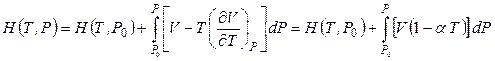 Проинтегрировав выражение (4.46) при условии постоянства температуры и определив исходное давление как Р0, находим значение энтальпии при заданной температуре Т и давлении Р:
