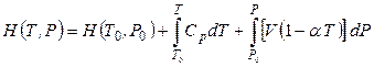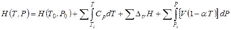 Следовательно, величину изменения энтальпии с изменением температуры и давления можно получить, проинтегрировав уравнение (4.41) с учетом выражения (4.48):
