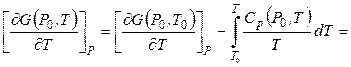 Путем интегрирования уравнения (4.26) найдем зависимость энергии Гиббса от температуры при постоянном давлении Р0. Первое интегрирование (4.26) приводит к соотношению: