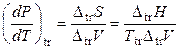 где ΔtrH – теплота фазового перехода, ΔtrV – изменение объема при переходе такого же количества вещества, к которому отнесено ΔtrH. Уравнение (4.100) и есть знаменитое уравнение Клапейрона-Клаузиуса.