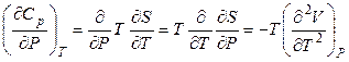 Например, требуется найти зависимость изобарной теплоемкости вещества от давления при постоянной температуре. С учетом преобразованного выражения (4.26) и соотношения (4.97)