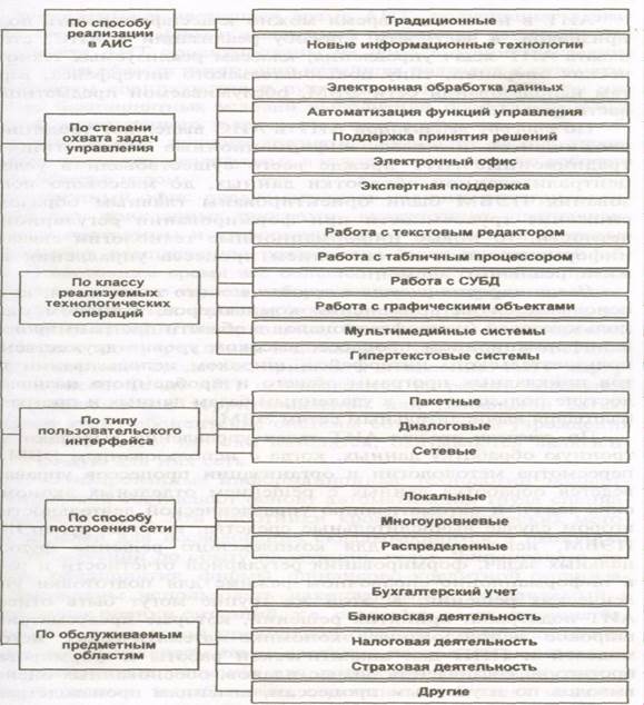 2. По степени охвата ИТ задач управления выделяют электронную обработку данных, когда с использованием ЭВМ без пересмотра методологии и организации процессов управления ведется обработка данных с решением отдельных управленческих задач, и автоматизацию управленческой деятельности. Во втором случае вычислительные средства, включая суперЭВМ и ПЭВМ, используются для комплексного решения функциональных задач, формирования регулярной отчетности и работы в информационно-справочном режиме для подготовки управленческих решений. К этой же группе могут быть отнесены ИТ поддержки принятия решений, которые предусматривают широкое использование экономико-математических методов, моделей и ППП для аналитической работы и формирования прогнозов, составления бизнес-планов, обоснованных оценок и выводов по изучаемым процессам, явлениям производственно-хозяйственной практики. К названной группе относятся и широко внедряемые в настоящее время ИТ, получившие название электронного офиса и экспертной поддержки решений. Эти два варианта ИТ ориентированы на использование последних достижений в области интеграции новейших подходов к автоматизации работы специалистов и руководителей, создание для них наиболее благоприятных условий выполнения профессиональных функций, качественного и своевременного информационного обслуживания за счет полного автоматизированного набора управленческих процедур, реализуемых в условиях конкретного рабочего места и офиса в целом.