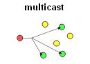 Multicast (англ. групова передача) (див. рис.1.10.3 )- спеціальна форма широкомовлення, при якій мережевий пакет одночасно надсилається певного підмножині адресатів - не одному (unicast), і не всім (broadcast).