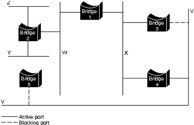 При використовуванні цього процесу усуваються всі мости, безпосередньо сполучені з кожною LAN, окрім одного; таким чином, віддаляються всі петлі між двома LAN. STA також усуває петлі, що включають більше двох LAN, в той же час зберігаючи зв'язність. На Мал. 29-4 "Мережа ТБ після прогону STA" показані результати дії STA в мережі, зображеній на Мал. 29-3. На Мал. 29-4 більш чітко показана топологія дерева. Порівняння цього малюнка з малюнком мережі до прогону STA показує, що STA перевів в режим резерву як порти Моста 3 в LAN V, так і порти Moста 5 в LAN V.