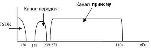 Рисунок 2.8.1 Частотний розподіл ADSL / POTS.